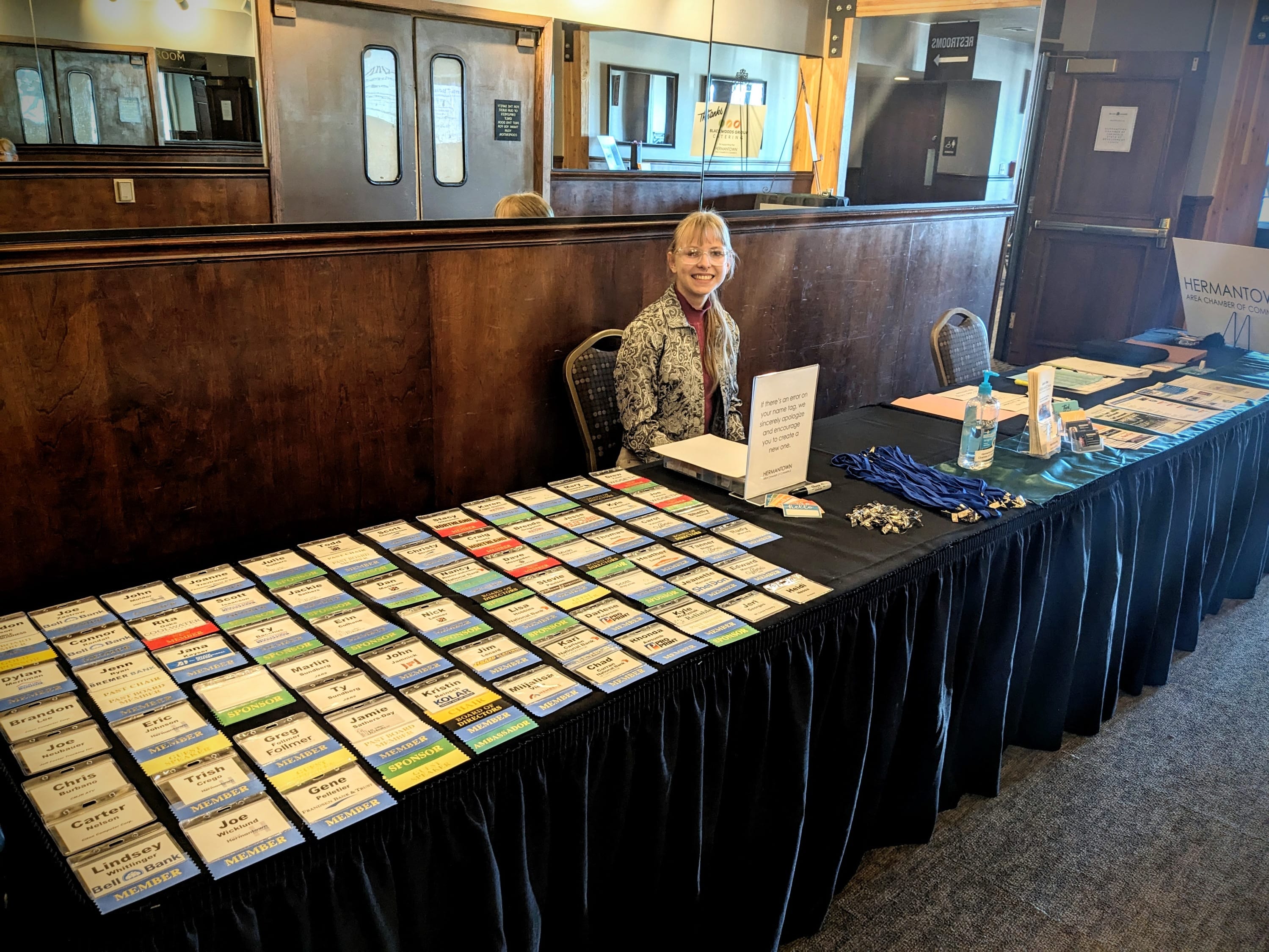 Registration ends one week before the luncheon at noon. Registration includes a custom name tag with a business logo for members. If space is available, registrations received afterward will receive a cute but very understated, "Hello, my name is" nametag. Your advance registration helps our small staff and caterer plan efficiently for this event, and we really appreciate your help with that.
