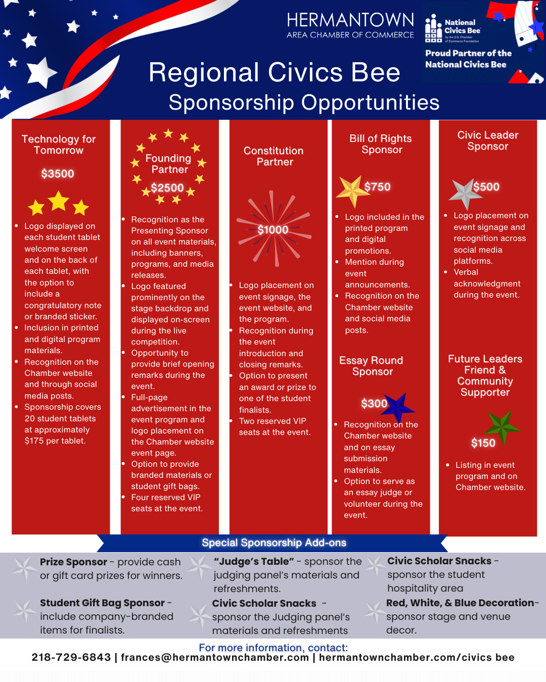 The Hermantown Area Chamber of Commerce is excited to partner with the US Chamber of Commerce Foundation to host a regional competition for the National Civics Bee for middle school students in grades 6-8.